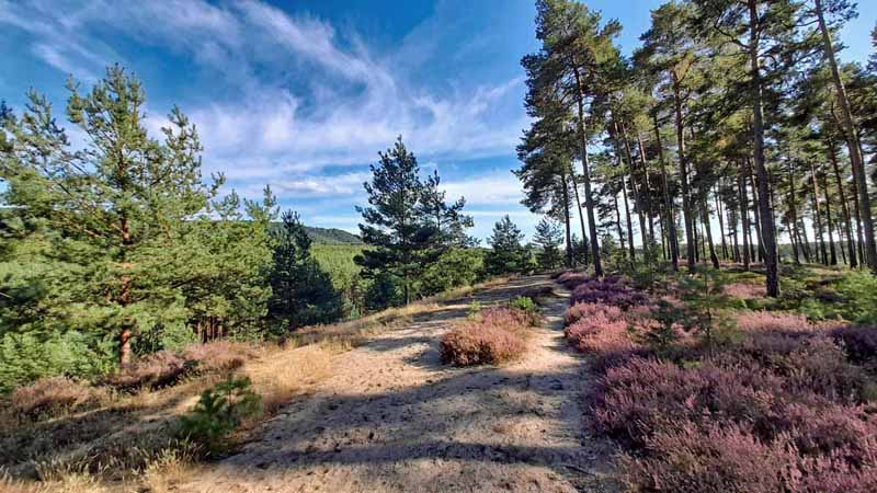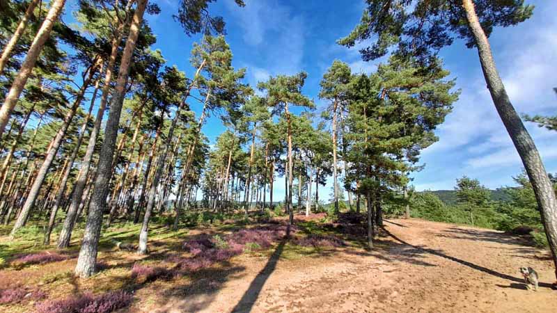 Schaut euch die Kiefern und den Waldboden einmal genauer an, dann könnt ihr noch das eine oder andere Fleckchen mit Flechtenkiefernwald entdecken. Insgesamt ist es hier auch an Wochenenden und in den Ferien sehr ruhig. Nehmt euch am besten etwas zu trinken und ein kleines Picknick mit, denn von der nächsten Einkehrmöglichkeit seid ihr kilometerweit entfernt.