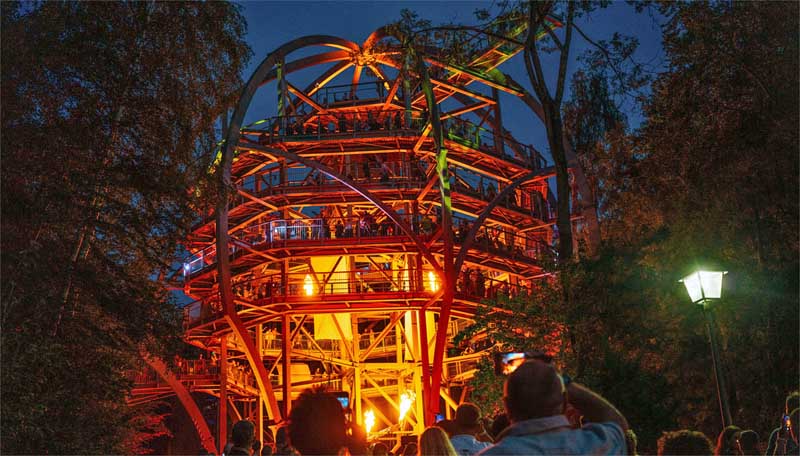 Höhepunkt ist bei den meisten Baumwipfelpfaden in Deutschland ein Turm, der sich spiralförmig nach oben in den Himmel schraubt. Hier oben auf der Aussichtsplattform erscheint der Wald – und vielleicht auch die ganze Welt – in einem völlig anderen Licht. Tannen, Fichten oder auch Buchen erscheinen wie ein riesiger, welliger Moosteppich, in den man sich nur zu gerne hineinlegen möchte.