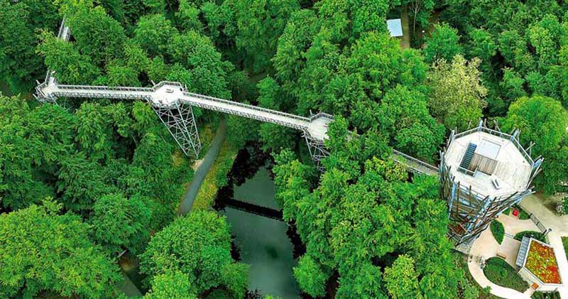 Einer der schönsten Wipfelwege in Deutschland befindet sich in der Nähe von Bad Langensalza im Nationalpark Hainich. Der barrierefreie Pfad schlängelt sich durch die Baumkronen eines angehenden Urwaldes mit guter Perspektive auf einen sehr ursprünglichen und artenreichen Lebensraum. Kletterelemente auf dem Baumkronenpfad sorgen für den kleinen Nervenkitzel zwischendurch.