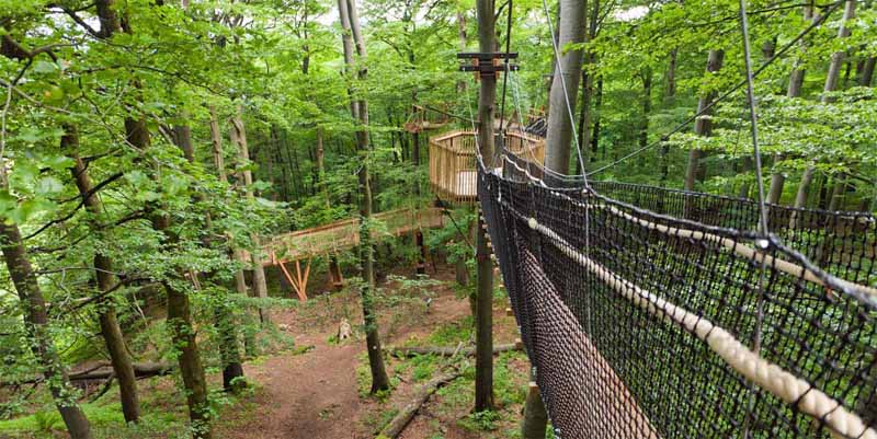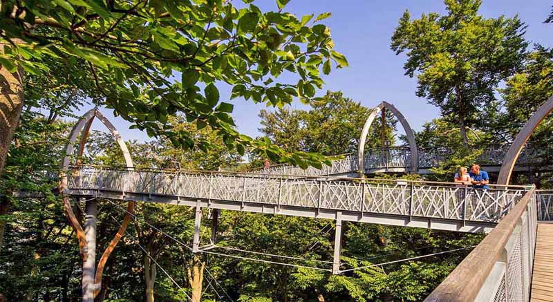 Nur rund 50 km östlich von Köln liegt am Rande des Naturparks Bergisches Land der Naturerlebnispark und die Jugendherberge Waldbröl Panarbora. Neben dem Rundkurs auf dem Baumwipfelpfad mit Aussichtsturm gibt es hier auch Übernachtungsmöglichkeiten in Baumhäusern und globalen Dörfern, um Menschen jeden Alters neugierig auf Erfahrungen mit der Natur zu machen. Vor allem für Familien eine perfekte Möglichkeit, den Urlaub einmal ganz anders zu verbringen.