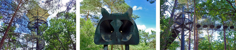 Wer hinaufsteigt, braucht schon ein wenig Mut, denn Angst vor der Höhe ist hier völlig fehl am Platz. Manchmal kann es hier oben sehr windig werden, denn in der luftigen Höhe seid ihr den Luftströmen völlig ungeschützt ausgesetzt. Hier könnt ihr euch vorstellen, wie sich die Vögel fühlen, wenn sie weit oberhalb der Baumkronen dahinsegeln.