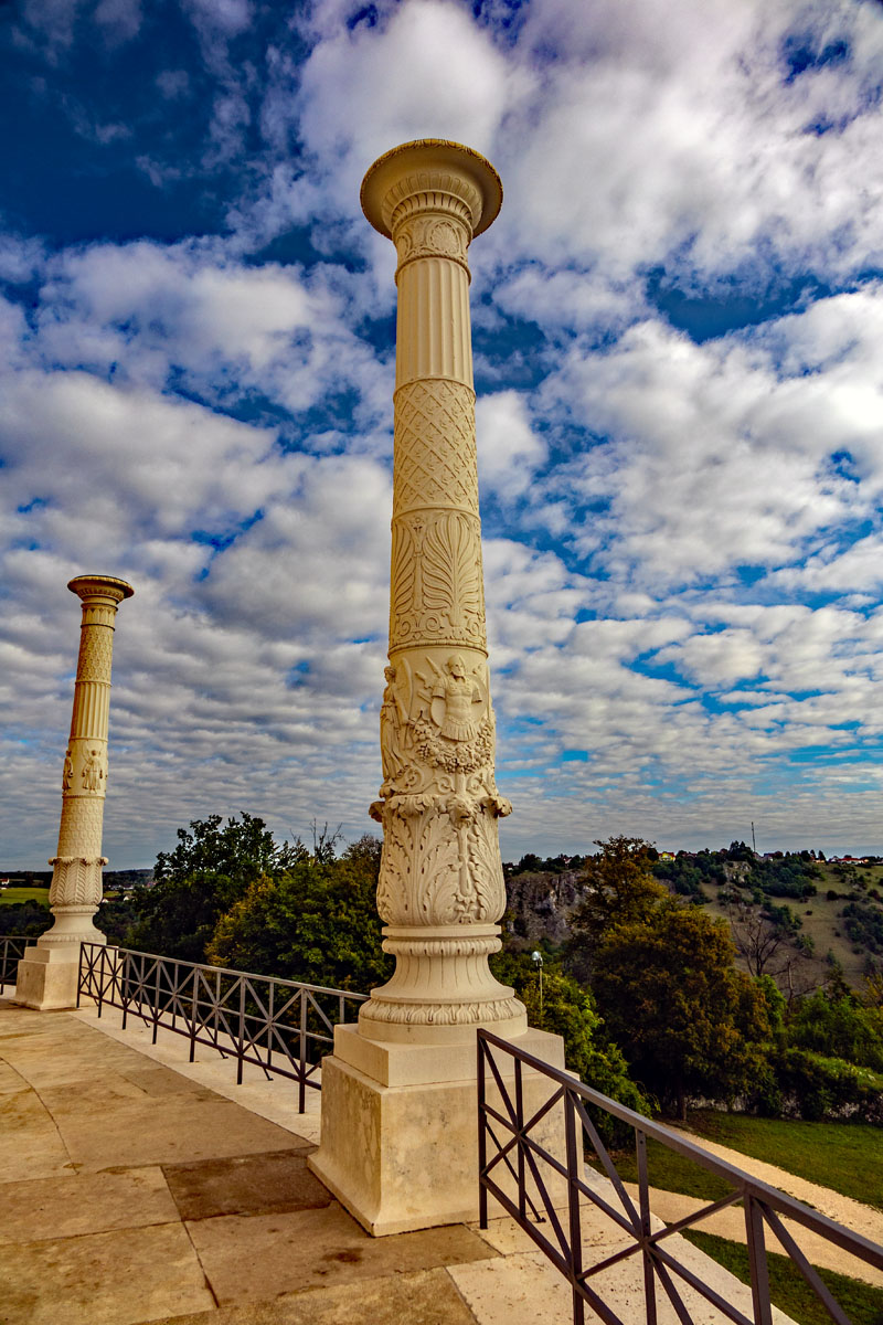 Der obere Umgang eine Etage höher wird durch eine Balustrade mit 54 Pfeilern umgrenzt, heute würden wir zu der Umfassung schlicht Balkongeländer sagen, auch wenn diese hier deutlich massiver ausfällt.