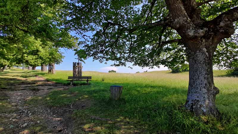 Eine gemütliche Runde auf und um den Zeugenberg startet auf dem Wanderparkplatz an der Freilichtanlage. Von hier aus geht es über die Lindenallee den Berg hinauf, einmal um das Gipfelplateau herum und auf der anderen Seite auf halber Höhe wieder zurück zum Ausgangspunkt.