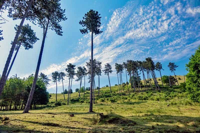Nicht etwa, weil der Berg als solcher gefährdet ist, sondern weil die Natur auf dem Berg geschützt werden muss und dafür ein paar Spielregeln aufgestellt sind, ist er 1982 zum Naturschutzgebiet erklärt worden. Er soll so bleiben, wie er ist, auch wenn so mancher hofft, dass der Berg bald wieder gänzlich bewaldet ist – so wie ein kleiner Teil, auf dem ein Föhrenwäldchen steht, das irgendwann einmal angepflanzt wurde. Und damit die Hänge frei von Bäumen und Büschen gehalten werden können, ist die Beweidung mit Schafen unerlässlich.