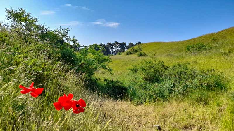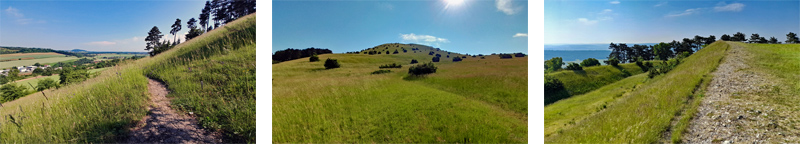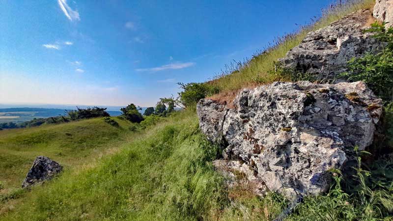 Weite Teile des Berges überziehen freie Heideflächen, die seltenen Pflanzen wie der Küchenschelle, die um Ostern herum ihre kräftig violetten Blütenkelche hervorbringt, einen Lebensraum. Neben ihr wachsen Frühlings-Enzian, Kalk-Aster und Katzenpfötchen auf den Trockenwiesen. Da wundert es nicht, dass es hier in den Sommermonaten vor Schmetterlingen nur so wimmelt. Wer genau hinsieht, entdeckt sicherlich einen Schwalbenschwanz. Und mit viel Glück flattert auch eine Berghexe, eine braun-beige gemusterte Rarität unter den Faltern, über die Hänge.