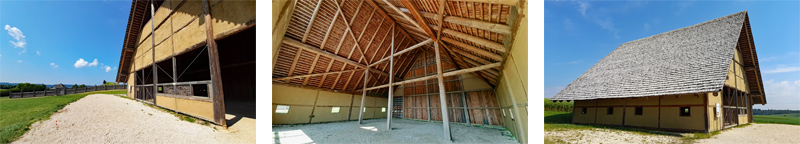 Meist bestand ein fürstlicher Rechteckhof aus mehren Wohngebäuden und ein paar Wirtschaftsgebäuden. Über die Ausstattung der Häuser ist bis auf die Herdstellen nur wenig bekannt. Der quadratische Holzbau ist dem Grundriss des Gebäudes nachempfunden, dessen Überreste bei Bopfingen-Flochberg ausgegraben wurden.
