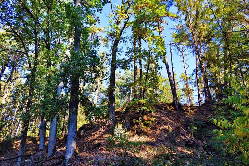 Streift man durch den Reichswald, ist einem vielleicht gar nicht bewusst, dass man sich inmitten zahlreicher Steinbrüche befindet. Der einst hier existierende Berg wurde in Jahrzehnten, vielleicht sogar Jahrhunderten mühevoller Arbeit mit primitiven zweispitzigen Hacken seiner Kuppe beraubt.