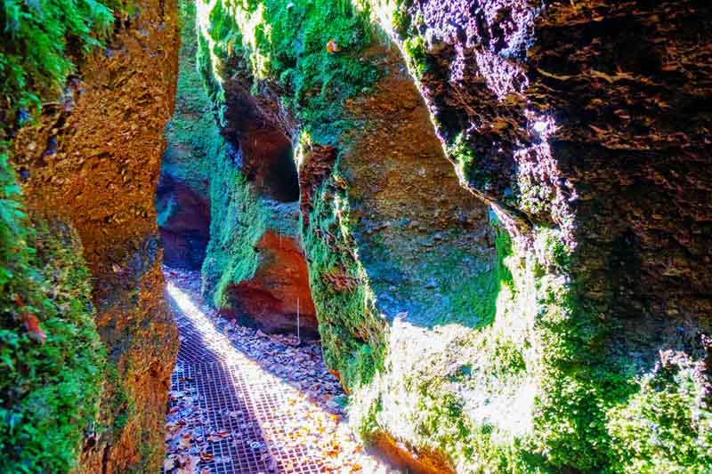 Und damit man überhaupt trockenen Fußes durch die Klamm laufen kann, ist über dem Bach ein Gitterrost angebracht, sodass die Besucher lediglich das tosende Rauschen des Wassers hören können, das unter ihren Füßen gen Tal rauscht. Im Winter bildet das Wasser, das durch die moosbewachsenen Felsen rinnt, bizarre Eisformationen. Ist es wirklich frostig, kann sich das Eis so weit ausbreiten, dass die Klamm nicht mehr begehbar ist.