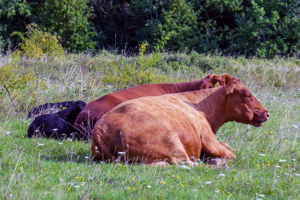 Angus-Rinder stammen ursprünglich aus dem Nordosten Schottlands und sind nicht nur sehr robust und genügsam, sondern auch wirklich gut für die Landschaftspflege geeignet. Meist trifft man sie entweder mit rotem oder auch mit schwarzem Fell an.