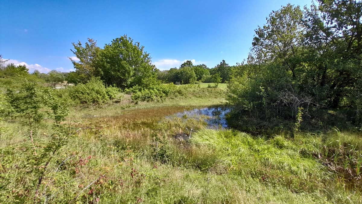 Durch die starke Beanspruchung des Bodens durch schweres Gerät ist nicht nur das Offenland mit seinen trockenen Magerwiesen entstanden. Zwischen sie streuen sich überall auch Feuchtgebiete ein. Dort, wo der Untergrund so sehr verdichtet ist, dass kein Wasser mehr versickern kann, haben sich kleine Tümpel und Teiche gebildet, die ebenfalls als besonderes Ökosystem seltenen Pflanzen und Tieren eine Heimat bieten.