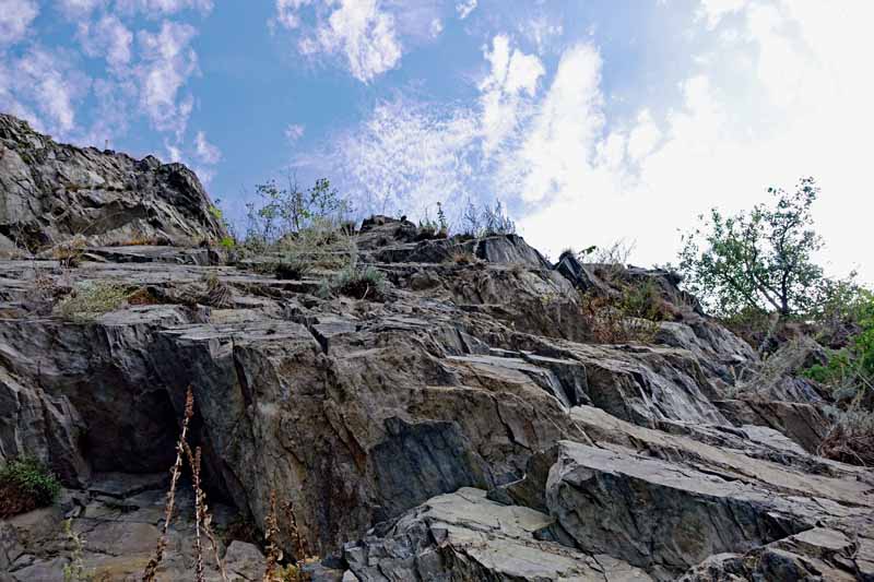 Im Laufe der Jahre hat die sich die Saale tief in den Untergrund gefressen. An einigen Stellen hier im Vogtland ist sie bei ihrem Verlauf auf das harte Gestein getroffen und hat deshalb ihren Lauf ändern müssen. Daher die vielen Schleifen, die sie zieht. Hier bei Burgk ist das Flussbett inzwischen rund 70 Meter tief gegraben, sodass an ihren Ufern Hänge entstanden sind, die teils bewaldet sind, teils aber auch aus schroffem Fels bestehen. Einer der größeren und sehr exponierten Felsen ist der Koberfelsen am Stausee Burgkhammer.