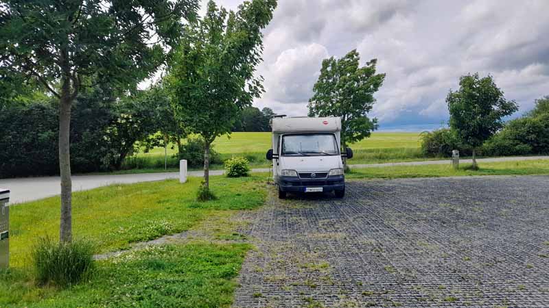 Hinter dem Parkplatz liegt ein Wohnmobilstellplatz für etwa 10 bis 15 Wohnmobile.