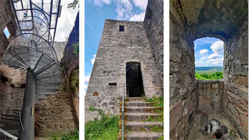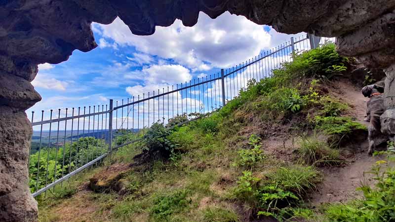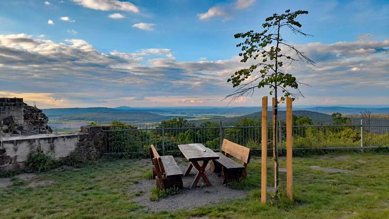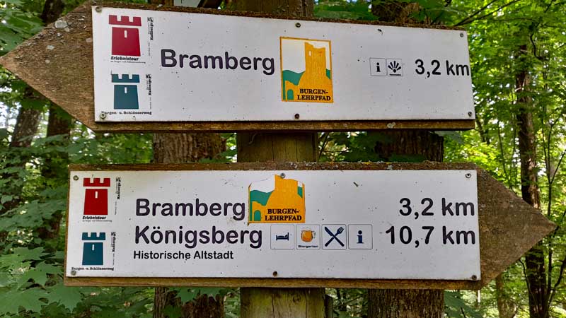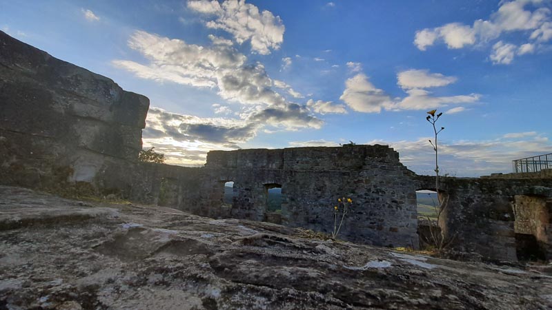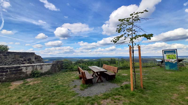 Mit knapp 500 Meter Höhe ist die Burg Bramberg die höchstgelegene Burganlage der Haßberge. Noch heute bietet sich vom Turm aus ein atemberaubender Rundumblick über das Umland. Errichtet wurde sie damals wahrscheinlich zum Schutz der Hochstraße, dem Rennsteig, der über den Kamm der Haßberge verlief. Ringsum die wundervolle Idylle des Naturparks, durch den jederzeit eine Wanderung lohnt. Wir haben uns die Erlebnistour ausgesucht, die direkt zur Burgruine führt.