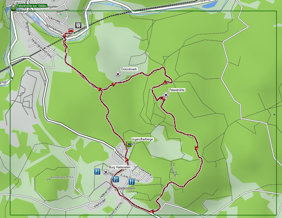 - Start/Ziel: Parkplatz am Dorfplatz in Streitberg