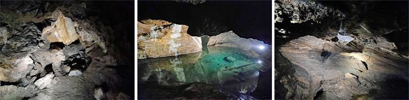 Der Weg durch die Drachenhöhle beginnt gleich im Kassenhaus. Es geht durch die unscheinbare Türe rechts neben dem Eingang über 81 Stufen in 16 Meter Tiefe hinab. Insgesamt beträgt der Führungsweg rund 350 Meter, vorbei an glasklaren, blauen Seen und unzähligen wunderschönen Tropfsteinformationen vorbeikommt.