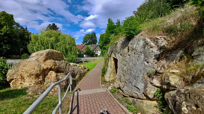 Rundweg von den Höhlenwohnungen in Langenstein zu Gläsernen Mönch und der KZ-Gedenkstätte
