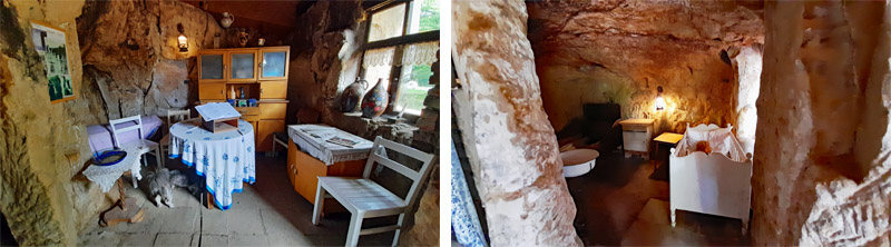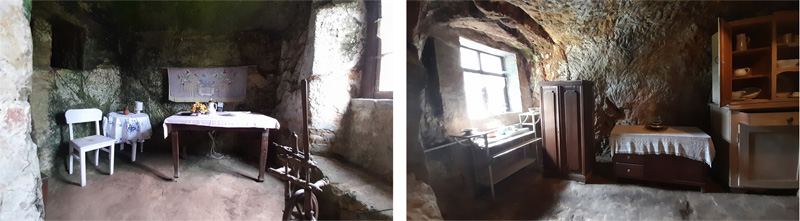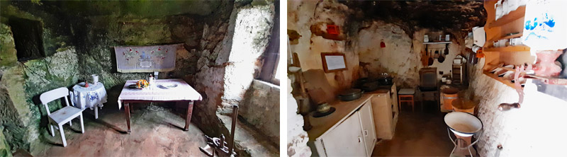 Die erste Höhle, die wahrscheinlich ursprünglich in der germanischen Zeit als Zufluchtsort diente, steht inzwischen wieder völlig nackt da und man kaum noch Anzeichen der ehemaligen Ausstattung erkennen. Ganz anders sieht das bei der hinteren Höhle aus, die ebenfalls wie eine Art Museum eingerichtet ist.