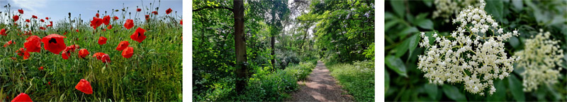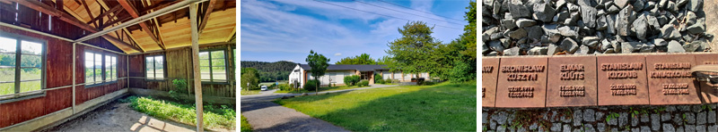 Dort halten wir uns rechts und gehen am Waldrand entlang weiter. An der ersten Abzweigung nach links geht es wieder zurück zum Parkplatz an der KZ-Gedenkstätte, von der wir gestartet sind.