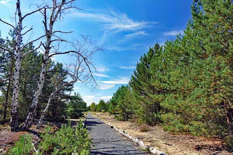 Und genau deshalb steht die eigentliche Wüstenlandschaft und einige andere Gebiete unter Totalschutz. Das Betreten ist verboten und deshalb gibt es natürlich auch keine Wanderwege in der Lieberoser Wüste. Für alle Interessierten hat die Stiftung Naturlandschaften Brandenburg (NLB) deshalb eine Art Lehrpfad angelegt, auf dem sich die natürliche Entwicklung der Wüste zu einer bewaldeten Landschaft wunderbar darstellt und im Mai 2015 den Sukzessionspark Lieberoser Heide eröffnet.