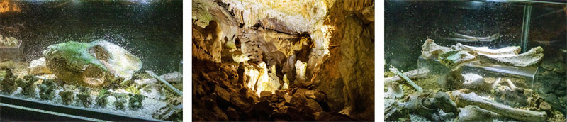 An einem neuen Durchgang liegt der Erlhain, der nach dem Mitentdecker Josef Erl benannt ist. Das Gewölbe heißt Märchenwald, denn die Stalagnaten, die die Decke stützen, sehen aus wie knorrige Eichenstämme. Wer genau hinsieht, findet sicherlich auch das Liebespaar. Und in der Vitrine liegen die Knochen eines Höhlenbären.