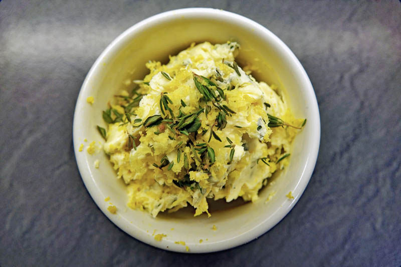 - Die weiche Butter mit Salz und Zitronensaft abschmecken. Anschließend alle anderen Zutaten untermischen. Und fertig ist die feine Zitronen-Thymian-Kräuterbutter.