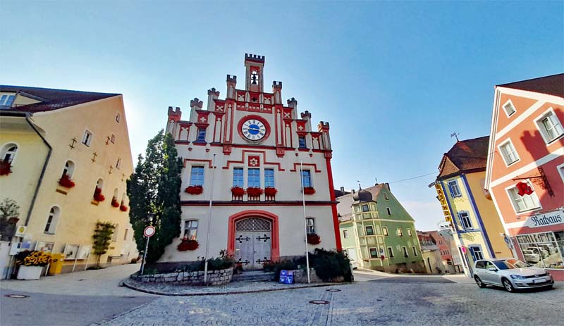 Die damalige Befestigung am Fuße der Burg zierten ganze 13 Türme. Heute stehen davon nur noch zwei. Hinein und heraus kam man über drei Tore in der Wehrmauer. Die Zerstörung haben das Nordtor und der Kapsenturm überstanden sowie Teile der alten Wehrmauer. Der Ortskern, auch als Stadtplatz bezeichnet, wird von stattlichen Bürgerhäusern mit spitzen Giebeln gesäumt. Besonders repräsentativ ist das Rathaus am Kopfende, das den Stadtplatz vom Hinteren Markt trennt. Heute befinden sich im Erdgeschoss vieler dieser alten Häuser Geschäfte wie Metzger und Bäcker.