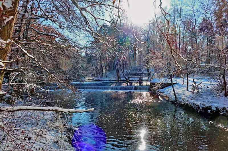 Mitten im Fränkischen Seenland mit seiner hügeligen Landschaft findet ihr die Ortschaft Georgensgmünd. Nur knappe 40 km südlich von Nürnberg bietet die kleine Gemeinde, in der sich die Fränkische Rezat und die Schwäbische Rezat zur Rednitz vereinigen, einen guten Ausgangspunkt für zahlreiche Wanderungen durch den Landkreis Roth und das Fränkische Seenland. Einen dieser Wanderwege, nämlich den Loreleiweg von rund 8 Kilometer Länge, haben wir uns heute für einen kleinen Ausflug in die winterliche Landschaft ausgesucht. Eine gute Wahl, wie sich gezeigt hat. Denn wir wandern nicht nur durch die herrliche Natur, sondern begegnen auch der lebendigen Geschichte der Region.