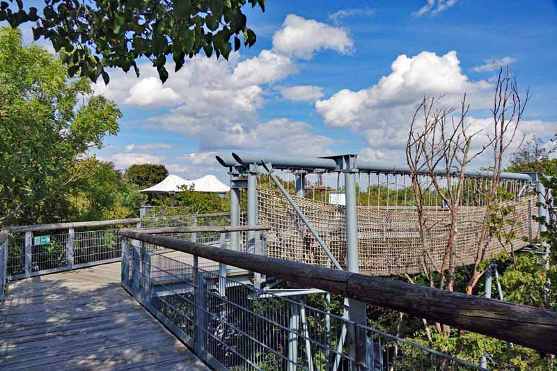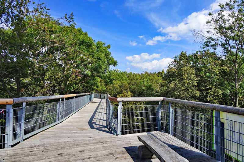 Im zweiten Abschnitt kommen Abenteurer und Forscher auf ihre Kosten. Und ganz am Ende mündet der Holzpfad in den Baumturm. Um auf die 41 Meter hohe Plattform zu gelangen, müsst ihr schon schwindelfrei sein.