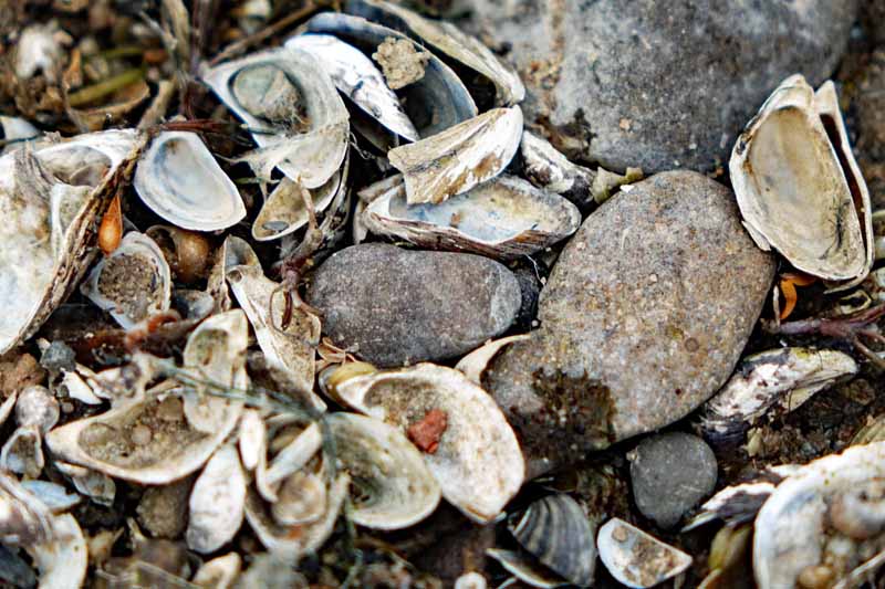 Sie verdrängen damit andere Muscheln, ersticken sie gar, indem sie diese überwachsen. Wenn ihr hier am Mainufer die vielen Muschelschalen genauer anseht, entdeckt ihr vielleicht doch noch eine Schale einer anderen Muschelart dazwischen. Fast schon ein wenig wie eine Schatzsuche!