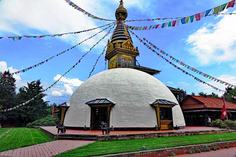 An den Ausläufern des Bayerischen Waldes, etwa 20 Kilometer östlich von Regensburg liegt unweit der Donau im Wald versteckt einer der wohl schönsten Parkanlagen in der Oberpfalz oder vielleicht ganz Bayerns: Ein beeindruckender nepalesischer Tempel eingebettet in einen liebevoll angelegten, artenreichen Staudenpark – und mittendrin zahlreiche typisch asiatische Kunstwerke. 90.000 Quadratmeter Land, ein alter Steinbruch und sonnige Hanglage – das alles ist der Nepal Himalaya Park in Wiesent. Bei guter Wetterlage kann man bis zum Großglockner sehen.