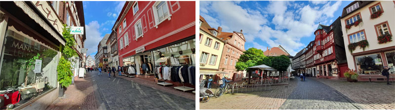 Ringsum reihen sich ein Ensemble an sorgfältig restaurierten Fachwerkhäusern aneinander, die an die Blütezeit der Stadt im 16. und 17. Jahrhundert erinnern. Sie alle zeichnen sich durch sehr unterschiedliche Farben, Proportionen und Verzierungen aus. Hier wohnten einst die einflußreichen Getreide- und Weinhändler Miltenbergs. Das älteste der Fachwerkhäuser in Miltenberg wird übrigens in das Jahr 1339 datiert.