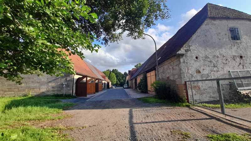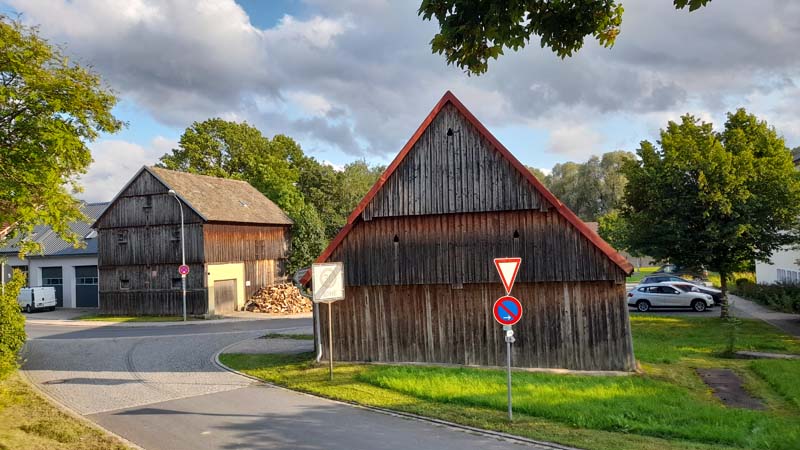 Sieht man etwas genauer hin, erkennt man hier und da noch ein paar Lüftungsschlitze, seltener ein paar Gauben. Heute werden viele der ehemaligen Scheunen als Werkstatt oder Ähnliches genutzt. Wenn ihr ein Tor offenstehen seht, schaut ruhig einmal hinein. Oft sind noch die alten hölzernen Treppensteigen (etwas bessere Leitern) vorhanden und der Dachstuhl ist von unten einsehbar.