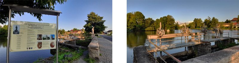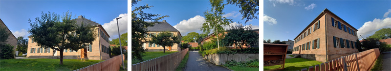 Das Ensemble aus Sandsteinquadern entstand am Ortsrand, weil die Gassen in der Altstadt recht eng waren und eine hohe Brandgefahr bestand. Eine Brücke zu den angrenzenden Äckern gab es nicht, man musste sich mit einer Furt begnügen. Von hier reicht der Blick bis zum Armesberg und dem Anzenstein, Ausläufern aus dem Steinwald und Fichtelgebirge.