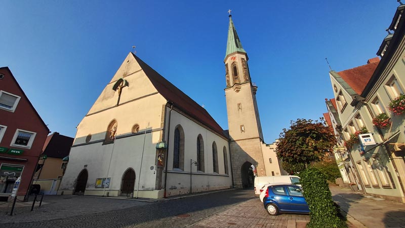 Die katholische Stadtpfarrkirche liegt im Zentrum der Altstadt am östlichen Ende des Stadtplatzes. Sie wurde 1448 als dreischiffige Anlage im spätgotischen Stil erbaut. Die Inneneinrichtung hat inzwischen verschiedene Epochen überlebt und zeigt sich heute im barocken Angesicht.