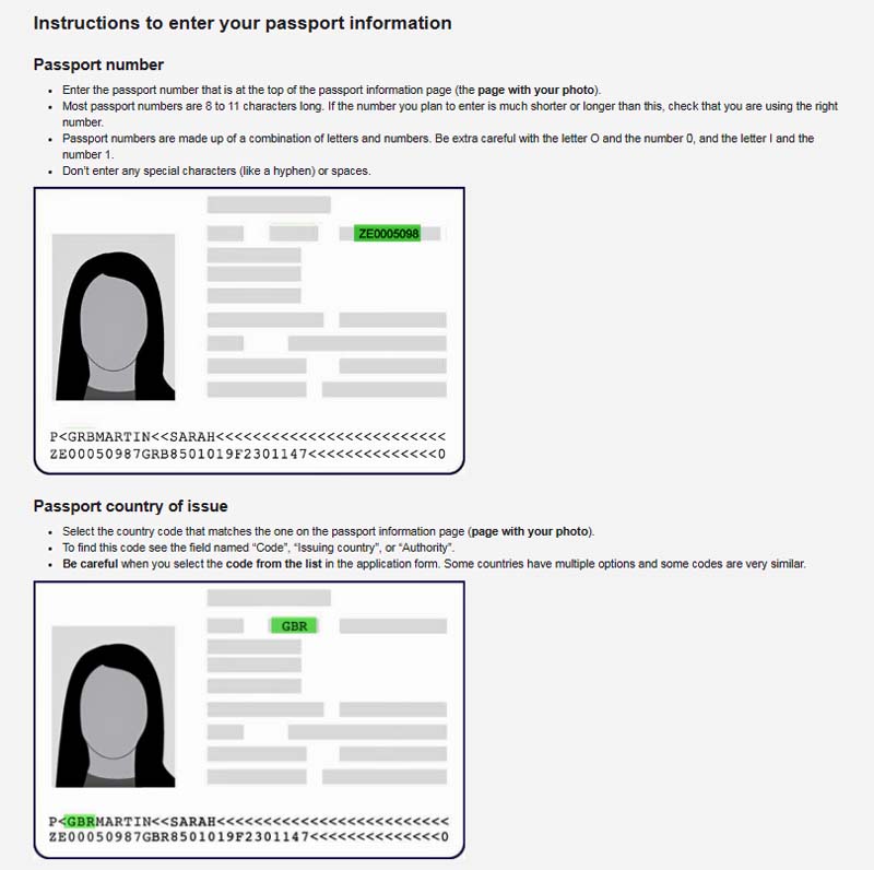 - Pass-Nummer, zweimal hintereinander, damit du dich nicht versehentlich vertippst (Passport number und Passport number re-enter)