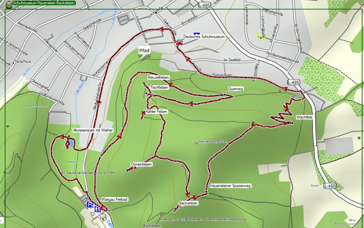- Start/Ziel: Parkplatz am Schuhmuseum, Turmstraße, Hauenstein