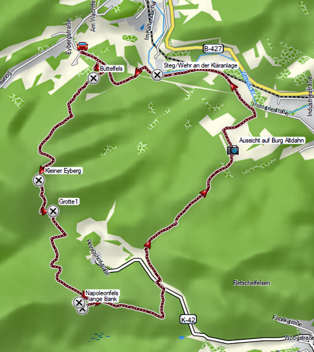 - Start: Wanderparkplatz Eybergstr. oder am Felsland Badeparadies