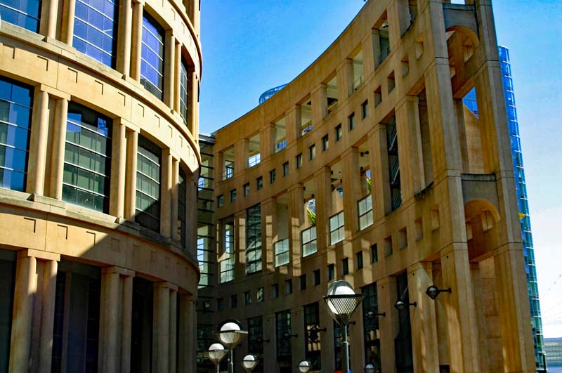 Die Zentralbibliothek der West Georgia Street im östlichen Geschäftsviertel von Vancouver City. Die Bibliothek umfasst einen gesamten Block im Viertel und erinnert an das Kolosseum in Rom. Die Zentralbibliothek von Vancouver zählt fast drei Millionen Medien. Sie befindet sich in der 350 West Georgia Street, im östlichen Teil des zentralen Geschäftsviertels und umfasst einen gesamten Block, der als Vancouver Library Square bezeichnet wird.