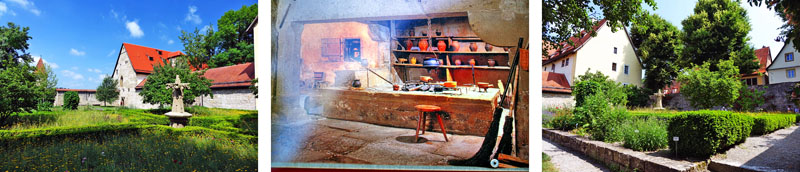 Das Stadtmuseum Rothenburgs ist im ehemaligen Kloster der Dominikanerinnen untergebracht. Es zeigt Kunst und Kultur der ehemaligen Reichsstadt. Wer links vom Museum durch die kleine Pforte geht, trifft auf den Klostergarten, den ehemaligen Garten des Diminikanerinnenklosters. Alte Gemäuer umgeben typische Strukuren des klösterlichen Gartens – und noch heute findet man Menschen dort, die die angenehme Ruhe im Klostergarten genießen und ein wenig vom Alltag entspannen.