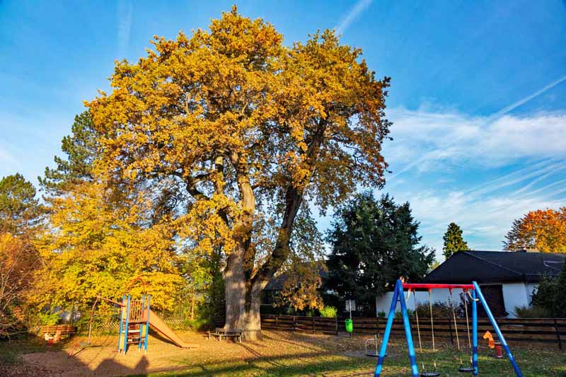 An die 700 Jahre ist sie alt und hat wahrscheinlich schon einiges miterlebt, was sie uns erzählen könnte. Könnte sie denn sprechen. Die alte, aber immer noch rüstige Dame ist die Röthenbacher Eiche. Sie steht in Röthenbach auf einer Wiese und spendet den Kindern auf dem Spielplatz ringsum Schatten und allerhand tolle Naturprodukte zum Basteln im Herbst.
