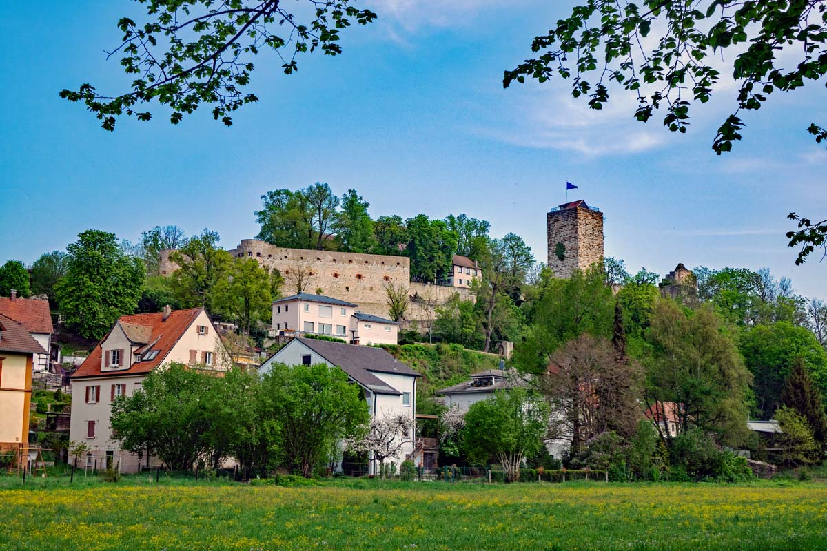 Aus 35 Metern Höhe konnten die Bewohner der Burg Thann die Umgebung bestens überwachen. Als natürlicher Schutz vor Feinden diente der Burgberg, denn nur ein einziger Zugang führte von der Südseite über eine Zugbrücke hinein in die wehrhafte Vorburg, die ihrerseits die Hauptburg schützte. Alle anderen Seiten waren durch steile Abhänge gesichert. Drohte Gefahr, schloss man die schweren Eichentore und zog einfach die Zugbrücke hoch. Heute ist in der Burg ein Museum untergebracht, das ihr in den Sommermonaten an jedem dritten Sonntag im Monat besuchen könnt.