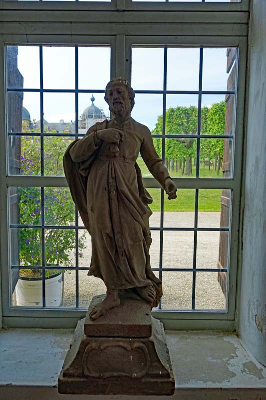 Als dann die gesamte Anlage Ende der 1990er Jahre von Grund auf saniert wurde, entfernte man die Zwischendecke und richtete dort ein Ferdinand-Tietz-Museum ein. Der Bildhauer des fränkischen Rokoko hat maßgeblich an der Gestaltung der Außenanlagen mitgewirkt. Er soll über 400 Figuren geschaffen haben und auch die Wasserspiele gehen auf sein Konto. Von den vielen Figuren sind leider nicht mehr allzuviele hier in Seehof geblieben.