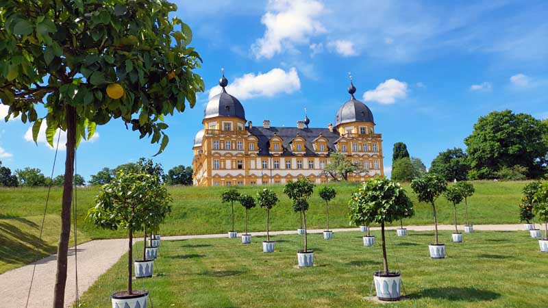 Eines der beeindruckenden Schlösser am Rande der Fränkischen Schweiz ist das Schloss Seehof. Schon der Fürstbischof im 17. Jahrhundert wusste, wo es in rings um Bamberg am schönsten ist. Und so wählte er nicht ohne Grund die beschauliche Gemeinde Memmelsdorf in der Fränkischen Toskana für den Sitz seiner Sommerresidenz aus. In dem strickt in Quader aufgeteilten Park erhebt sich als zentrales Monument das Schloss Seehof mit seinen markanten vier Ecktürmen.