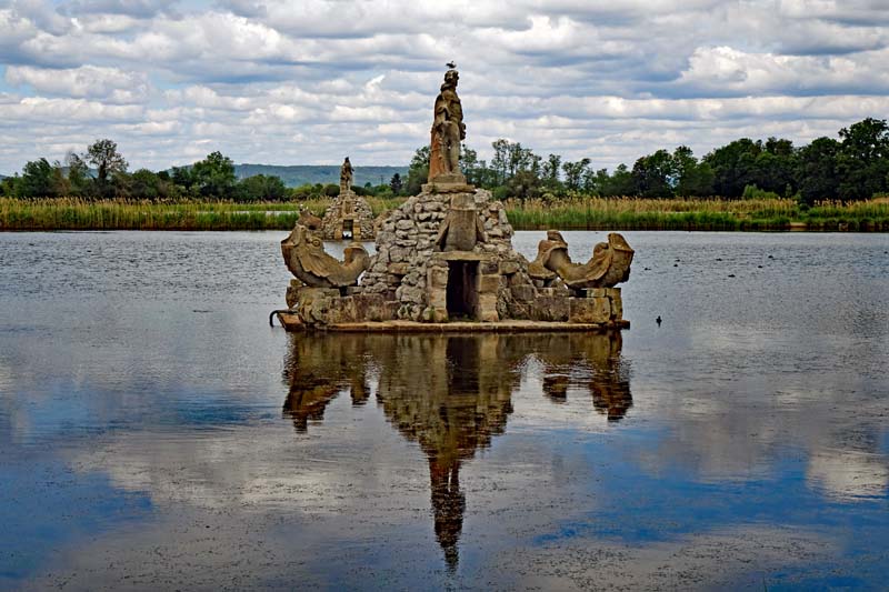 Auf Schloss Seehof schuf Ferdinand Tietz nicht nur unzählige Skulpturen für die Parkanlage (man spricht von über 400 Stück!), sondern er entwarf auf die Kaskade mit den Wasserpielen. Das Projekt war nicht ganz so einfach, denn die Wasserspiele sollten schon etwas extravagantes sein. Und so dauerte die Fertigstellung auch von 1764 bis 1771.