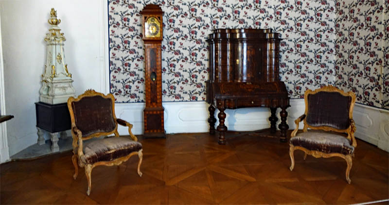 Neben dem Audienzzimmer schließt das Schreibzimmer an. Ok, Schreibkabinett. Dieser Raum diente als eine Art Büro.