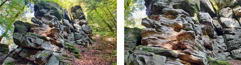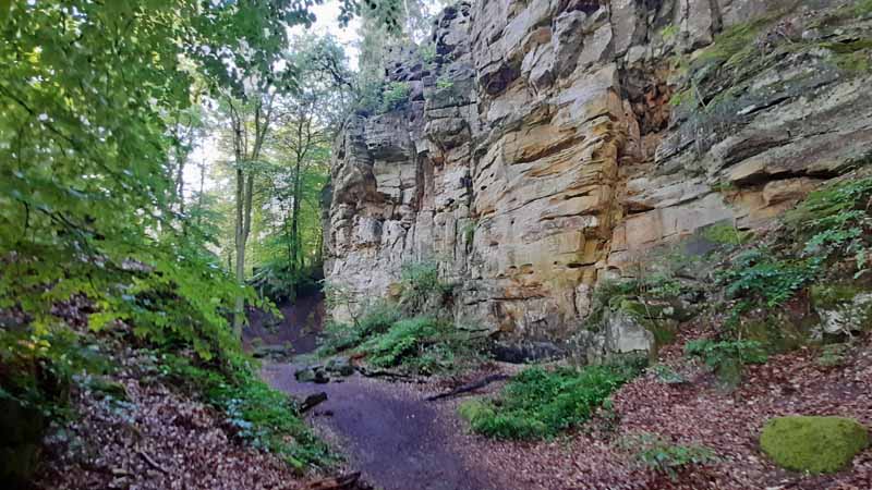 An der Kante des Plateaus befindet sich eine rund 40 Meter hohe Felszone aus Luxemburger Sandstein, deren Hänge mächtige Schutthalden bedecken. Gegen Ende der letzten Eiszeit, also vor etwa 11.000 Jahren, wurde es langsam wärmer, allerdings natürlich nicht gleichmäßig. Der Wechsel von Frost und warmen Perioden ließ immer wieder Wasser in die Spalten im Plateau eindringen, das die Hänge destabilisierte, sodass große Teile des Hangs abrutschten.