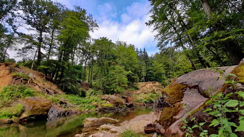 Aus geologischer Sicht gehört die Eifel zum Rheinischen Schiefergebirge. Anders als der nördliche gelegene Teil der Eifel, ist der Südteil nicht vom Vulkanismus geprägt, der die malerischen Mare hinterlassen hat. Die Geologie der Südeifel ist auf das tropische Meer zurückzuführen, das uns heute seinen zu Stein gewordenen Meeresboden aus sandigen Ablagerungen präsentiert: den Sandstein.
