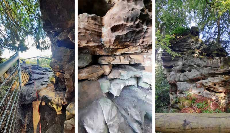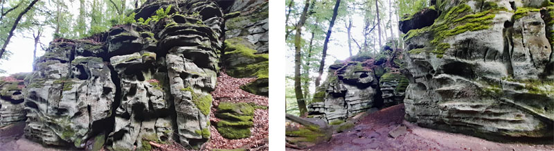 Als ein wirklich großer Block aus dem östlichen Rand des Plateaus herauskippte, öffnete dieser gewaltige Felssturz eine fast 30 Meter tiefe Felsspalte, die heute als Teufelsschlucht eine hohe Bekanntheit genießt. Die Teufelsschlucht gehört zu den atemberaubenden Landschaften, die Besucher auf eine Reise in die Erdgeschichte mitnimmt. Felsentürme, steile Felswände, die mit Moosen und Flechten bewachsen sind und je nach Witterung leuchten, Klüfte und Spalten, mächtige Steinblöcke – Steine überall und ringsum in bizarren Verwitterungsformen.