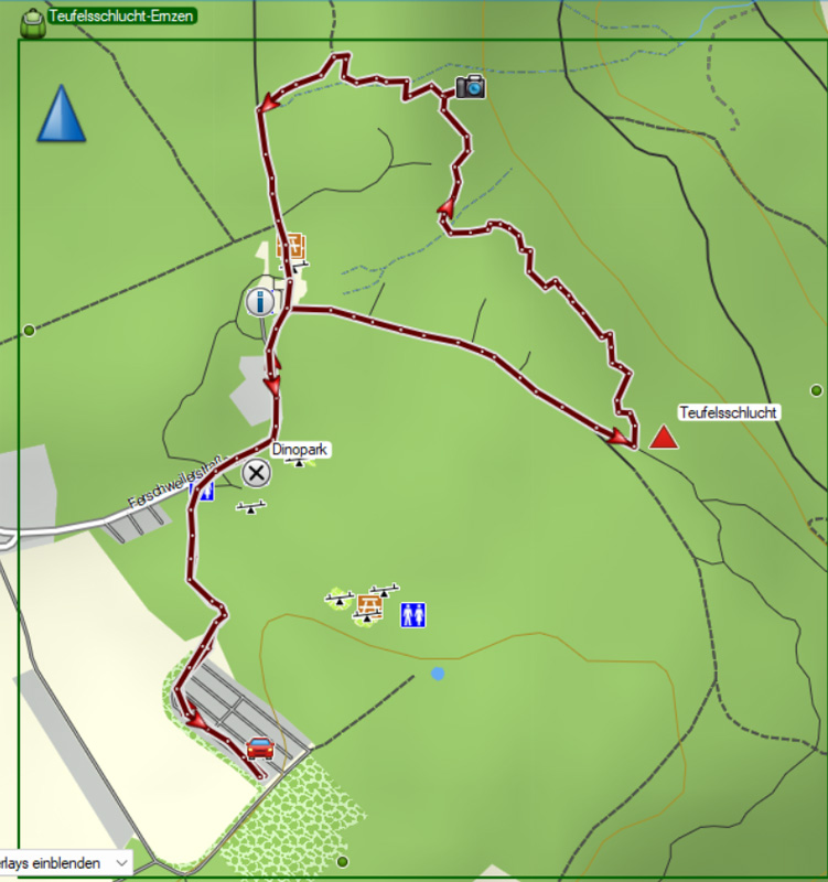 Wanderparkplatz >>> Dinosaurierpark >>> Naturparkzentrum >>> Teufelsschlucht >>> Wanderparkplatz