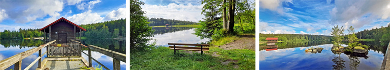 Schon direkt am Nordufer des Stausees beginnt sich die Vegetation zu verändern. Torfmoose, Wollgras und Heidevegetation machen sich hier breit. Mit etwas Glück kann man einen Biber beobachten oder begegnet einer der Kreuzottern, die im Allgemeinen aber eher das Weite suchen, bevor man sie entdeckt.